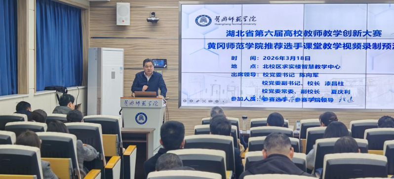 为助力参赛教师全面提升教学展示水平,积极备战省级教学创新大赛,我校于2026年3月18日在北校区智慧教学中心求实楼,组织开展了2026年教师教学创新大赛省赛录制预演巡课活动。校党委书记陈向军,校党委副书记、校长漆昌柱,校党委副书记王基家,校党委常委、副校长夏庆利等校领导亲临现场听课指导。课后活动反馈会议由夏庆利主持。